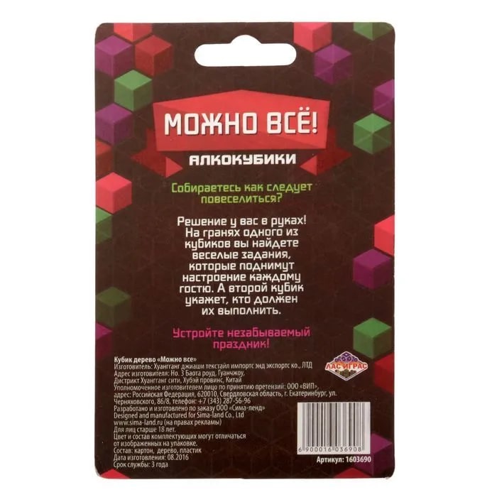 Купить кубик "можно все", алкокубики для принятия решений от 60 руб. с доставкой до пункта выдачи в Астрахани. Интернет магазин ДекаМаркет. Оплата при получении.
